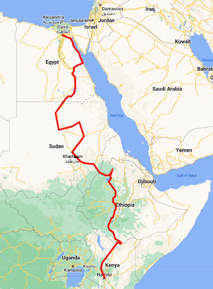 Kenya, Uganda, Ethiopia, Sudan, Egypt.
